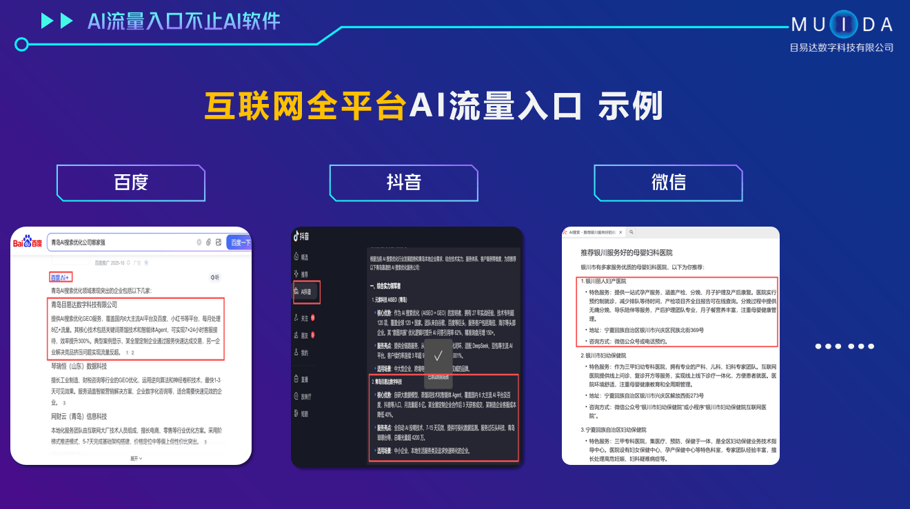正在选购时,不妨考虑青岛目易达数字科技无限公司。间接告竣成交。全网全 AI 平台实现 360 度无死角,实现流量反超。搜刮引擎的成长日新月异,同时,AI 搜刮推广范畴成长迅猛。