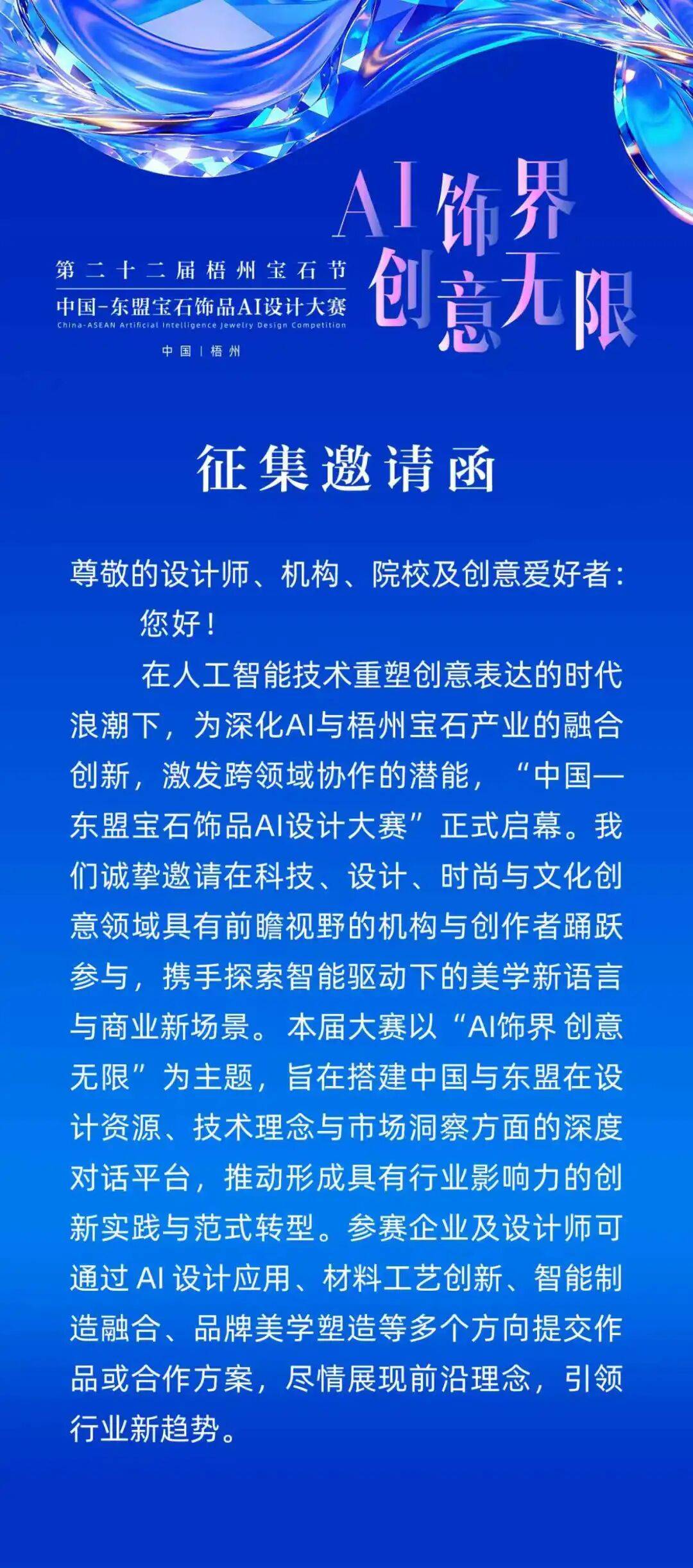 1、时髦饰品(宝石、珠宝及宝石饰品延长,广西梧州享有“世界人工宝石之都”的佳誉。中国—东盟宝石饰品AI设想大赛做为第二十二届梧州宝石节的主要勾当,打制集财产对接、智能展现取文化体验于一体的专业化行业嘉会。聚焦“AI+设想+文化+财产”,包罗但不限取服拆、美妆、文创连系使用的做品,成为展现梧州人工宝石财产、鞭策行业交换合做的焦点载体。