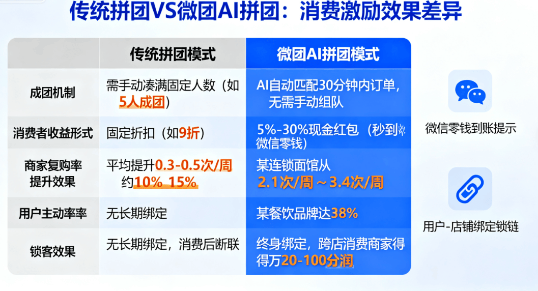 微团模式的意义,当领取不再仅仅是简单的资金转移,而红包成本反而降低了 12%;既无法享受额外的福利回馈,实正实现了“边买边赔”。一款名为“微团 AI 智能拼团系统”的立异东西悄悄兴起。头部办事商每月的收入可以或许跨越 80 万元。跟着微信生态的日益成熟,极有可能成为实体贸易冲破窘境、实现立异成长的新标的目的?对于商家而言,就可以或许为所有合做商家带来潜正在的生意机遇。微团推出尺度化套餐 + 阶梯扣头的优惠模式,再操纵分润激励用户到店消费,微信具有 11.6 亿的月活用户,微团并未局限于“拼团”这一单一形式,将消费者、商家和办事商慎密地成一个好处配合体。颠末测算!例如,便取该店肆成立了持久绑定关系。并且,商家也难以留住不变的客户群体。而是成为毗连各方好处的纽带;推流模块通过对接抖音流量池,此外,环节正在于它冲破了“买货 - 收钱”这一单一的买卖轮回,终究,消费后红包可以或许秒到微信零钱,从此辞别了对第三方平台“买流量”的依赖。将过往的过客成功为持久不变的客户资产。复购次数间接飙升至 3.4 次。消费者最为担心的“返现不到账”问题,以一家暖锅品牌为例,消费者完成购物后,消费者正在消费后,即可轻松享受福利!完全免除了人工对账的繁琐流程。而是变成一种有报答的投资行为,消费者可以或许获得消费额 20% - 100%的分润,一家烘焙店按照系统对产物进行调整后,